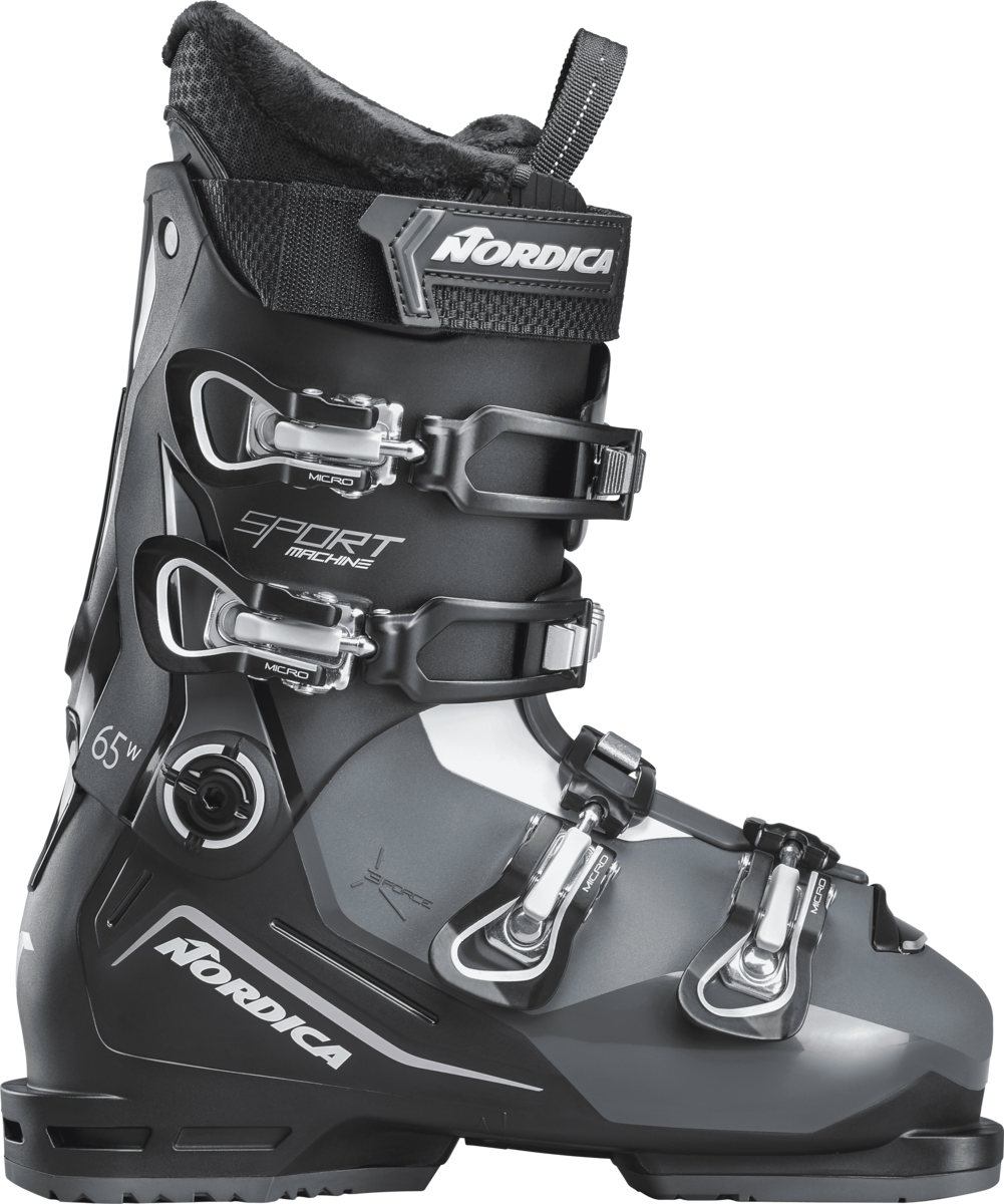 With an emphasis on comfort, Nordica’s Sportmachine 3 65 W focuses on your feet—so you can focus on your skiing. Reimagined to offer even greater control, it features a wider yet low-profile 102 mm fit and a softer shell that offers a plush and forgiving ride designed specifically for beginner and intermediate skiers. It's 3 Force Construction sports a new spine and cuff design that boosts your confidence and efficiency by maximizing the transmission of energy to the ski. Incredibly soft, its liner is built around a woman’s calf and can be heat molded for a custom fit. And thanks to a dual-entry instep, getting in and out of the boot is especially easy. Great days begin with Nordica’s Sportmachine 3 65 W.