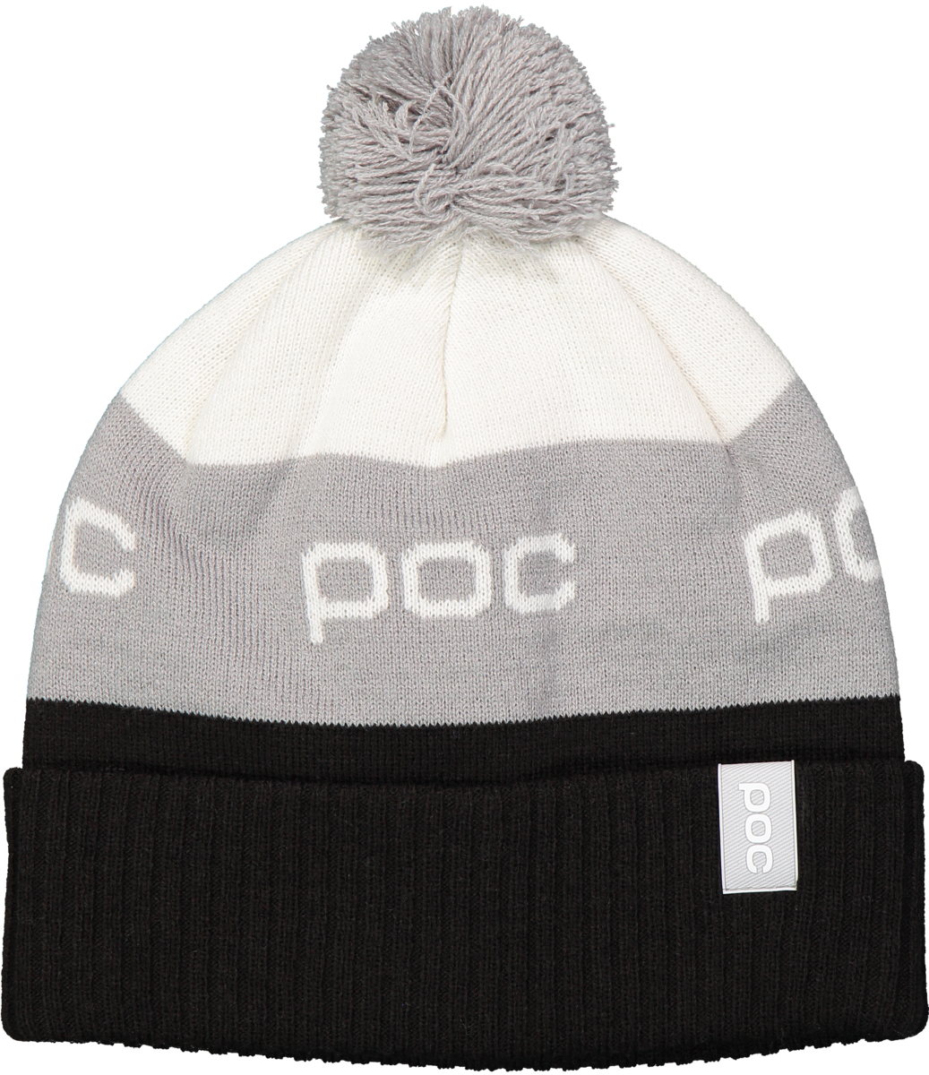 A jacquard knit beanie with pompom and a knitted POC logo, featuring a 7cm folded brim and a clip logo on the front left.